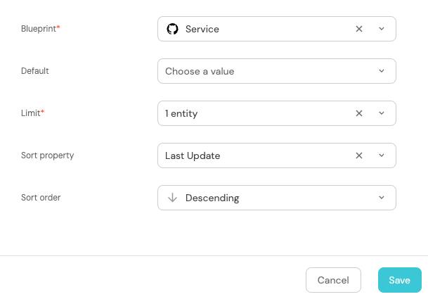 sortUsed to specify the sorting order of the entities in the dropdownOptional. Default is by entity's title, ascending