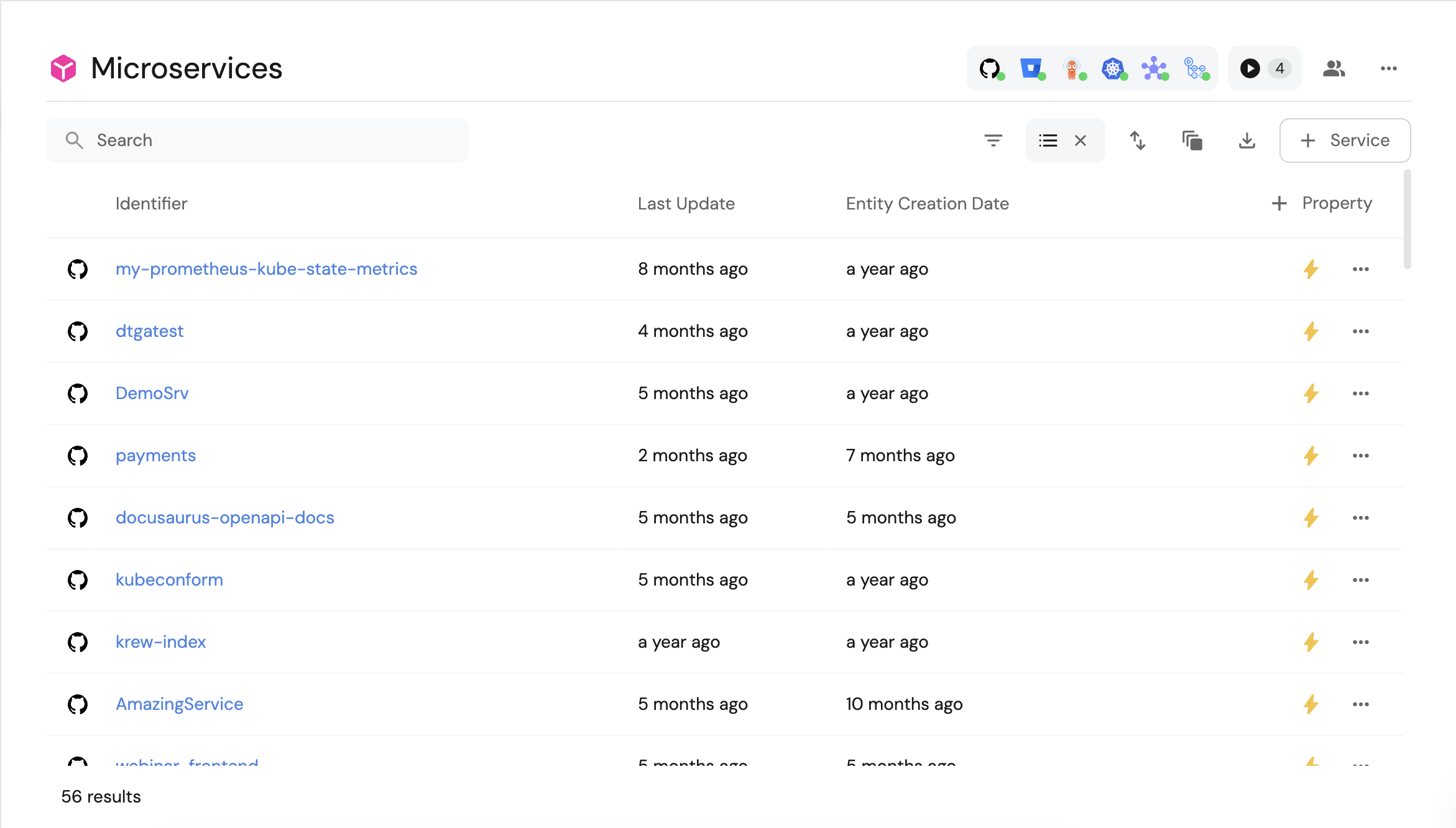 The auto discovery capability uses AI to analyze your existing catalog data and suggests missing entities based on existing relationships and patterns. This helps you maintain a complete and accurate catalog, especially for entities that are not automatically created through integrations (see common use-cases below).
