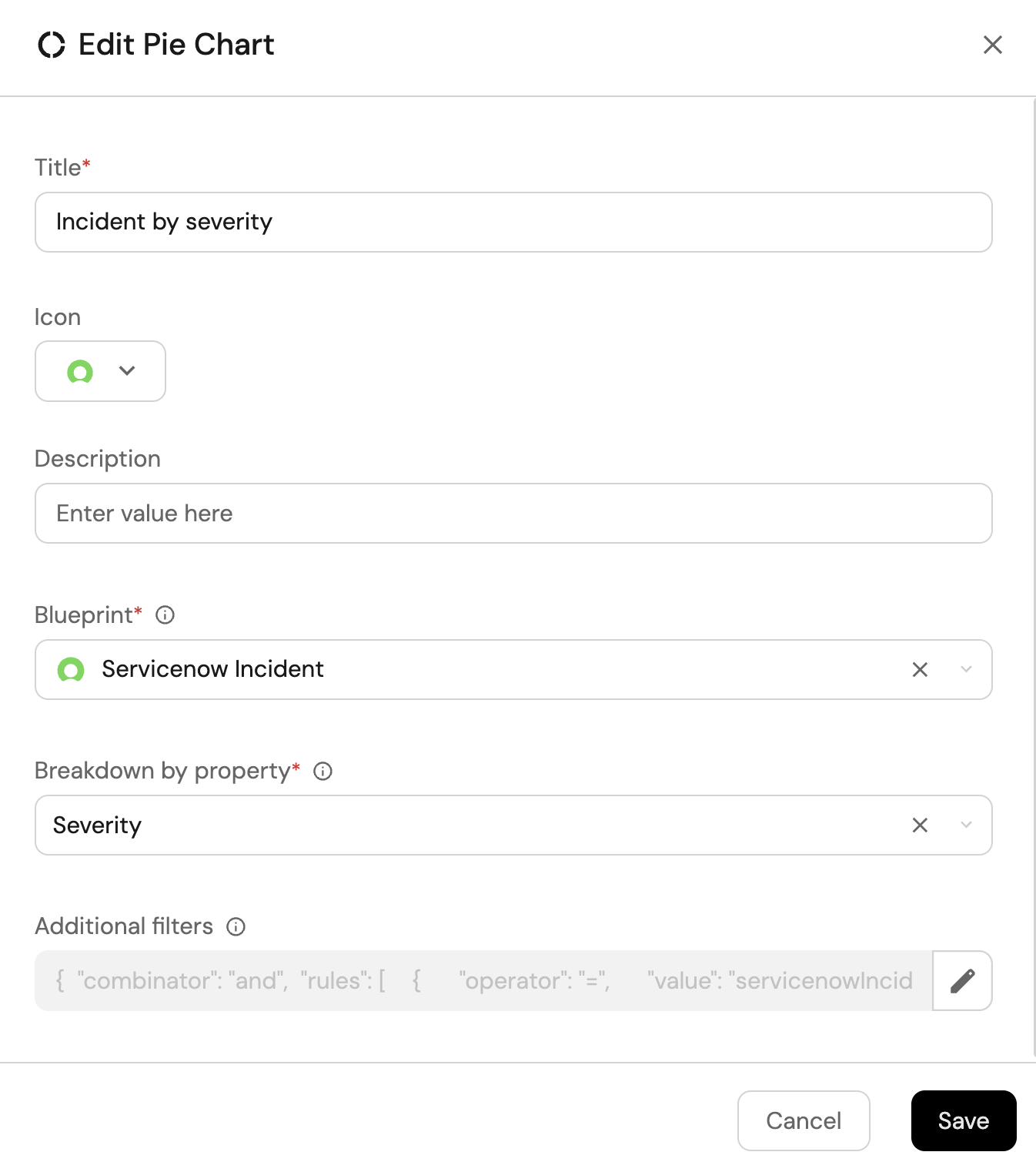 Count entitiesChart type and choose ServiceNow Incident as the Blueprint. -