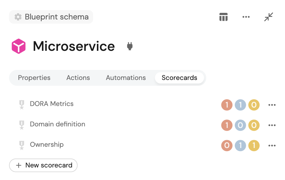 • A user with a moderator role on a blueprint can create scorecards for that specific blueprint. They can add them using the + New scorecard button in the blueprint’s scorecards tab in the Builder page.