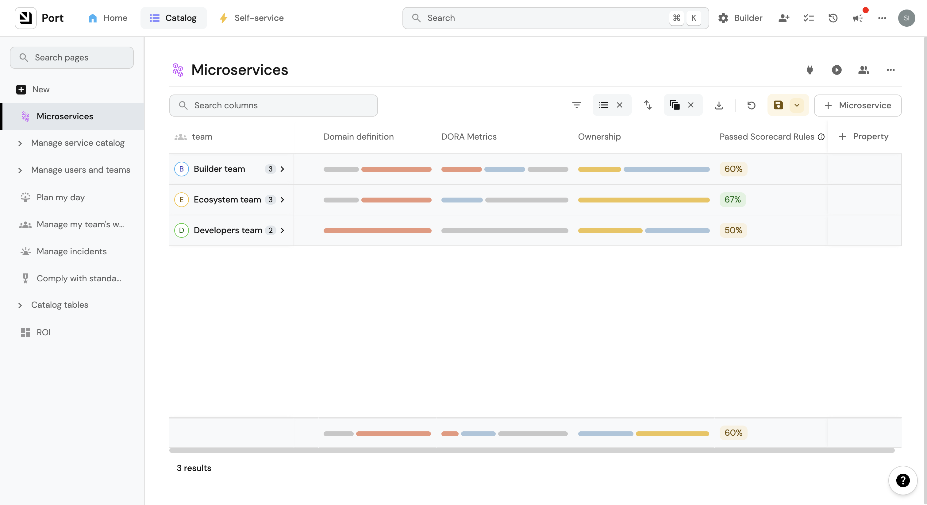 For example, here are the scores of all Microservice in an organization grouped by team: